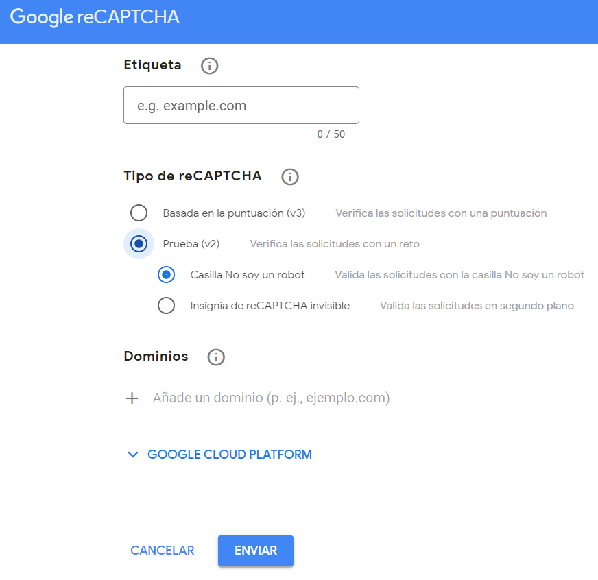 Damos de alta en la url https://www.google.com/recaptcha/about/ el dominio que nos interese proteger.